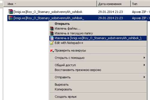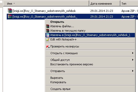 После установки WinRar , распаковываем скаченную книгу. Кликаем на неё правой кнопкой мыши и выбираем "Извлечь из ...название файла...". Все как показано ниже:
